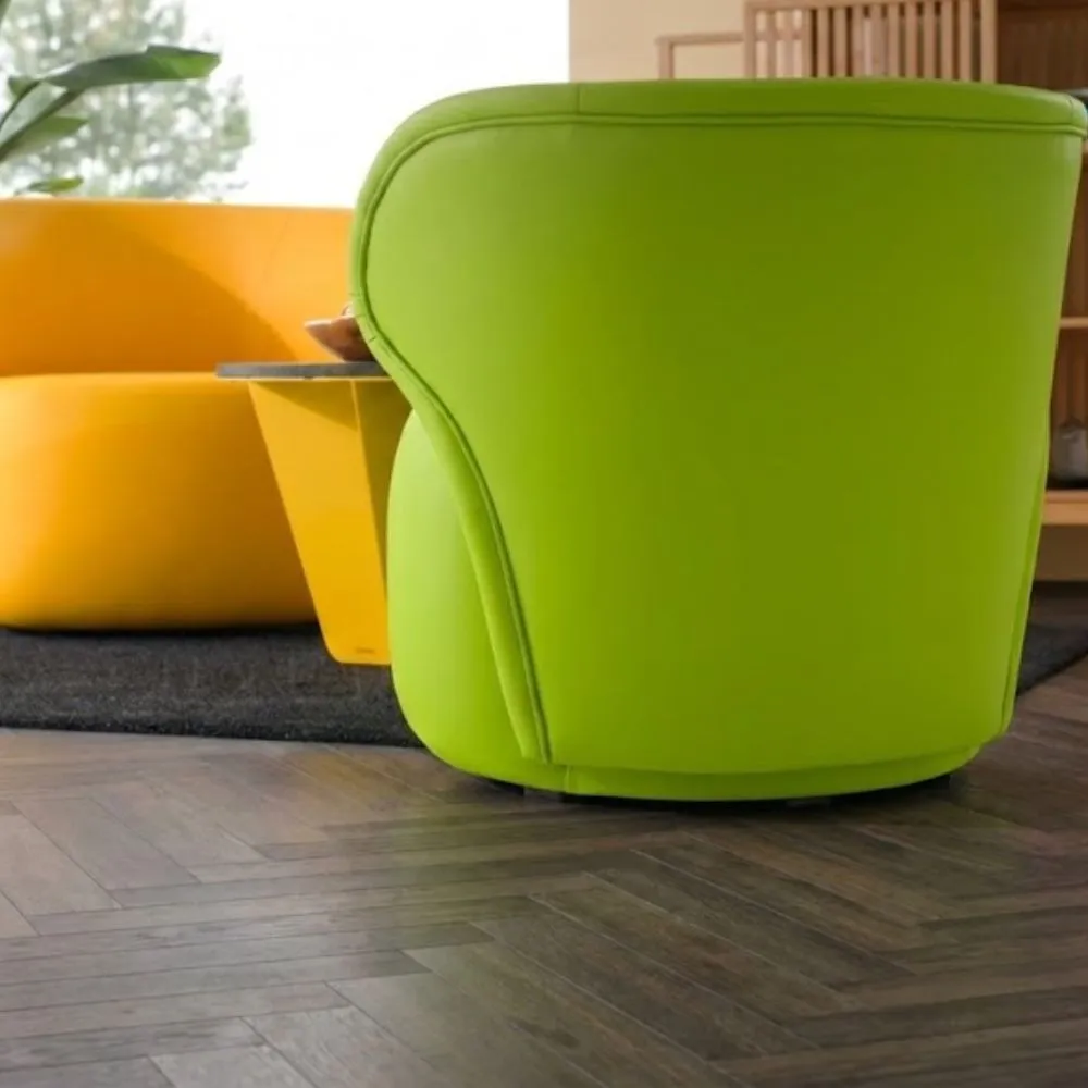 Fotel FARI to niewielki, tapicerowany mebel przeznaczony do salonu, oferujący styl i wygodę w kompaktowej konstrukcji. Ten fotel jest idealny dla osób poszukujących mebli łączących elegancję z praktycznością. Jego smukła, nowoczesna sylwetka i niewielkie wymiary sprawiają, że nadaje się do różnych aranżacji — od przytulnego salonu po szykowne biuro lub wyrafinowaną recepcję. Podstawa w stylu pufy zapewnia niezwykłą miękkość, a trapezoidalne, ergonomiczne oparcie wyprofilowane jest do tyłu, zapewniając wygodę nawet podczas długich okresów siedzenia. Co więcej, możesz uzupełnić swój fotel FARI dodatkowo o obrotową podstawę.