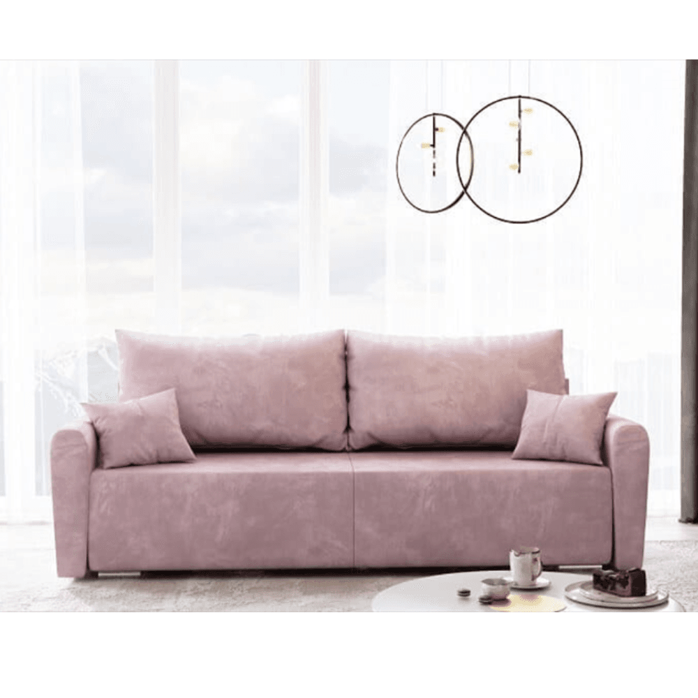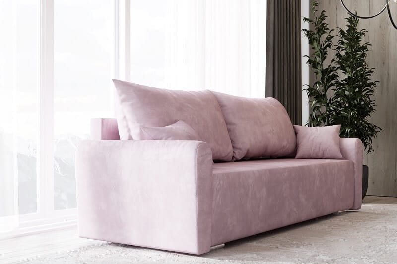 Rozkładana kanapa RINO z pojemnikiem na pościel i z dużymi poduszkami oparciowymi