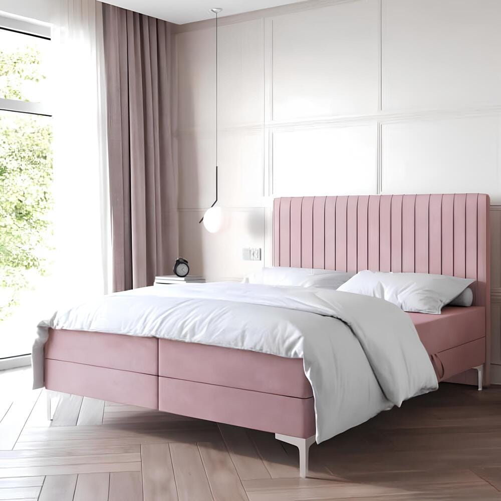 Odkryj zupełnie nowy poziom komfortu z naszym łóżkiem tapicerowanym boxspring Primo, które zachwyca eleganckimi, wysokimi nóżkami. To idealny wybór dla tych, którzy pragną zamienić tradycyjną sypialnię w nowoczesne, stylowe wnętrze. Model LUMI to boxspring osadzony na smukłych nóżkach, zaprojektowany z myślą o funkcjonalności. Wyposażony w dwa niezależnie otwierane pojemniki na pościel, umożliwia wygodne przechowywanie, a jednocześnie zapewnia przestrzeń do komfortowego snu. Tapicerowane wezgłowie dostępne w różnorodnych kolorach doda klasy i stanie się wyrazistym akcentem Twojej sypialni.