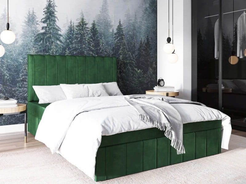 Dwuosobowe łóżko z materacem boxspring ROSSA z dwoma pojemnikami na pościel