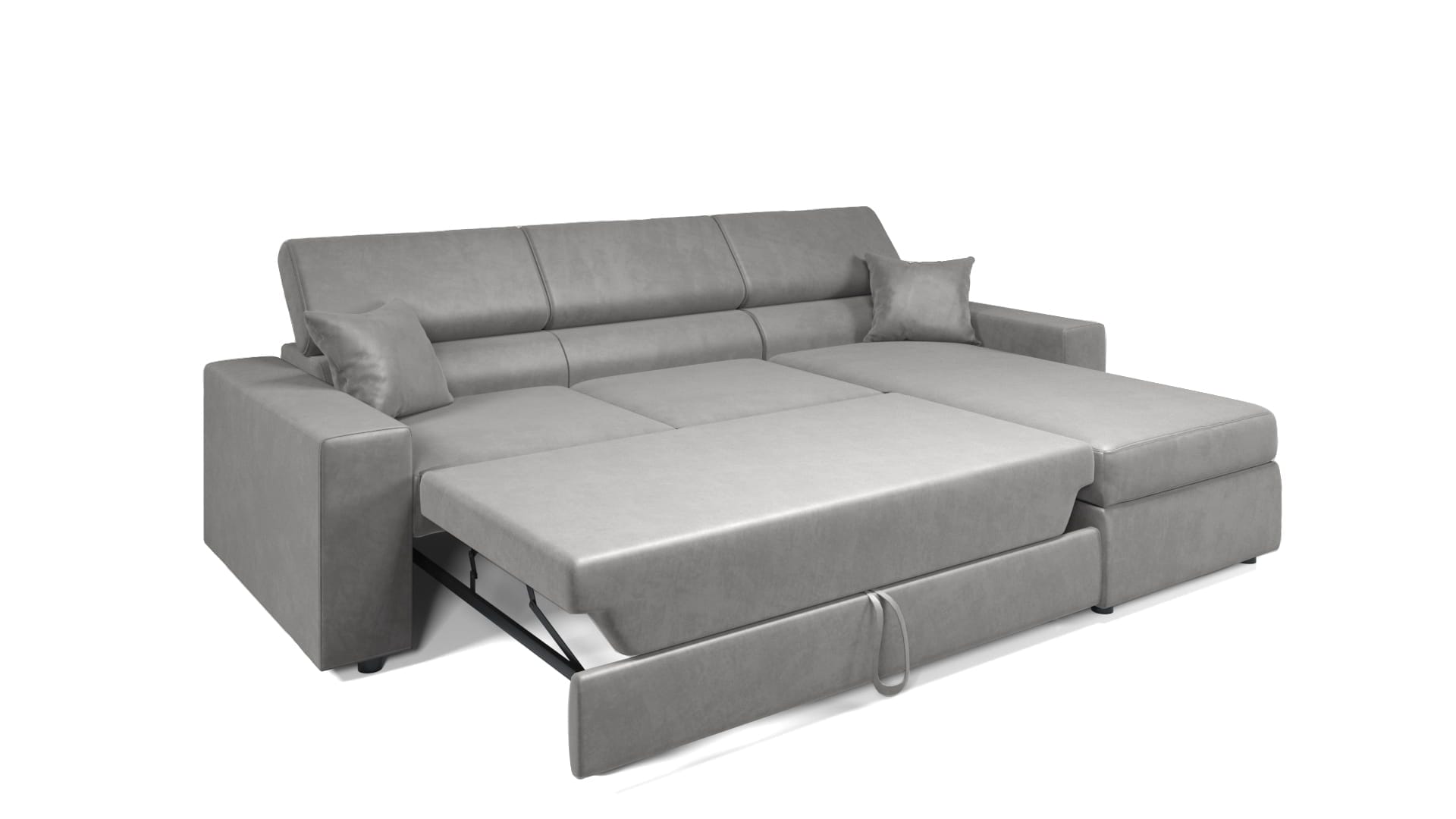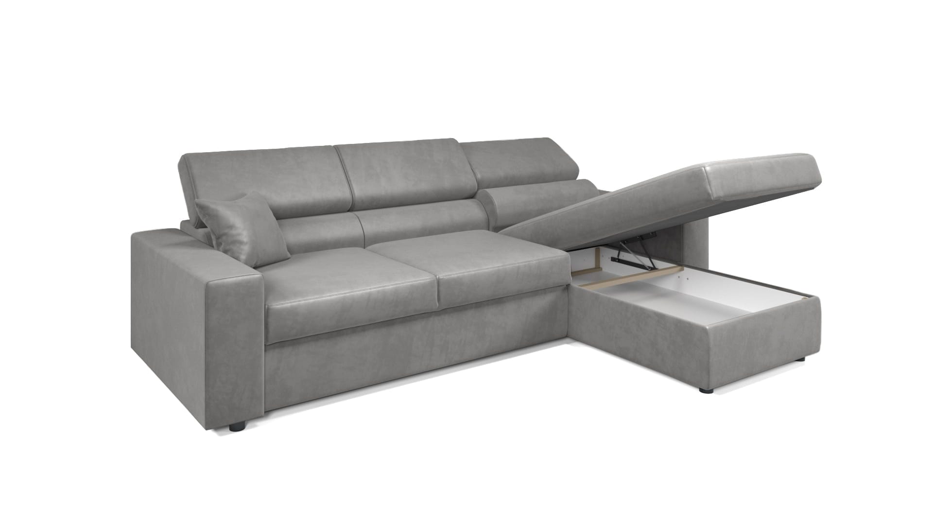 Rozkładany narożnik MIRA ze schowkiem na pościel i z regulowanymi zagłówkami