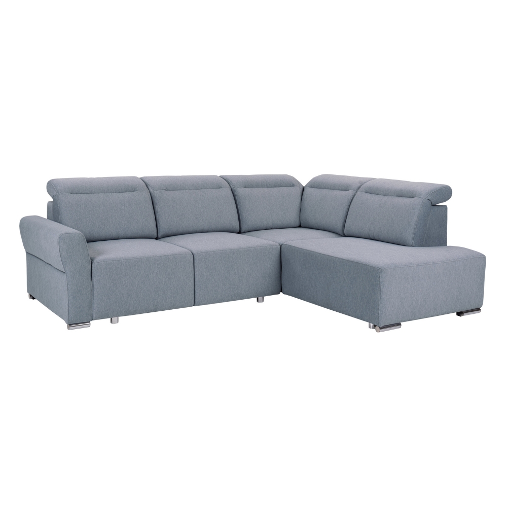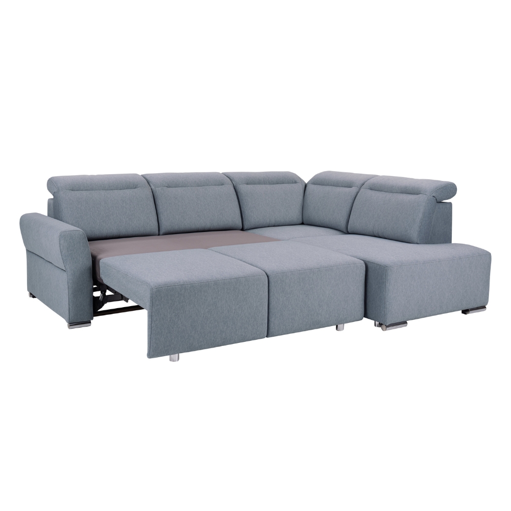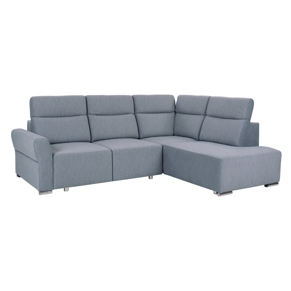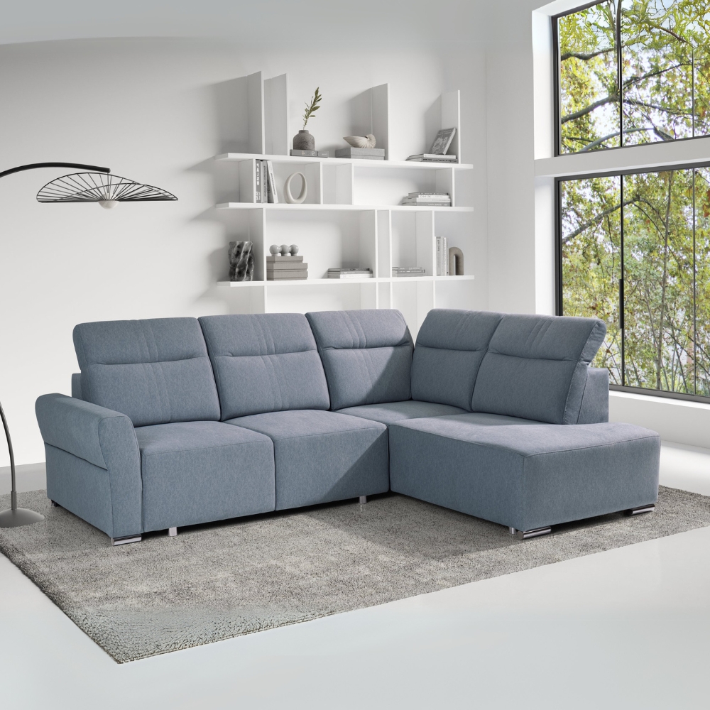 Siedzisko, oparcie oraz zagłówki narożnika PUTO są wykonane z pianki wysokoelastycznej (HR), co sprawia, że oferują optymalną sprężystość i komfort w codziennym użytkowaniu. Dodatkowo, sprężyny faliste wzmacniają konstrukcję, idealnie dopasowując się do kształtu ciała oraz zapewniając wysoki poziom komfortu zarówno podczas siedzenia, jak i leżenia. Co więcej, regulowane zagłówki umożliwiają precyzyjne dopasowanie podparcia do indywidualnych potrzeb użytkownika.