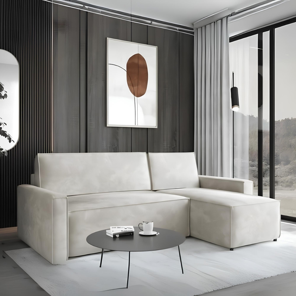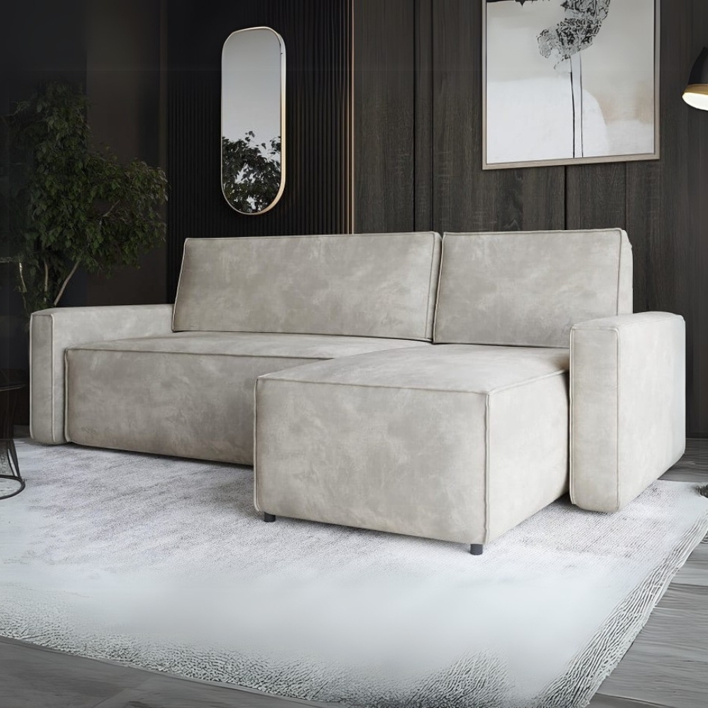 Nowoczesny narożnik z funkcją spania SAVANNA to doskonały wybór dla każdego, kto pragnie połączyć elegancję z funkcjonalnością. Dzięki solidnej konstrukcji, ten stabilny mebel wypoczynkowy z pojemnikiem na pościel zapewnia wygodę zarówno podczas codziennego relaksu, jak i nocnego odpoczynku. Odpowiednio dobrane wypełnienie sprawia, że siedzenie oraz spanie stają się prawdziwą przyjemnością.