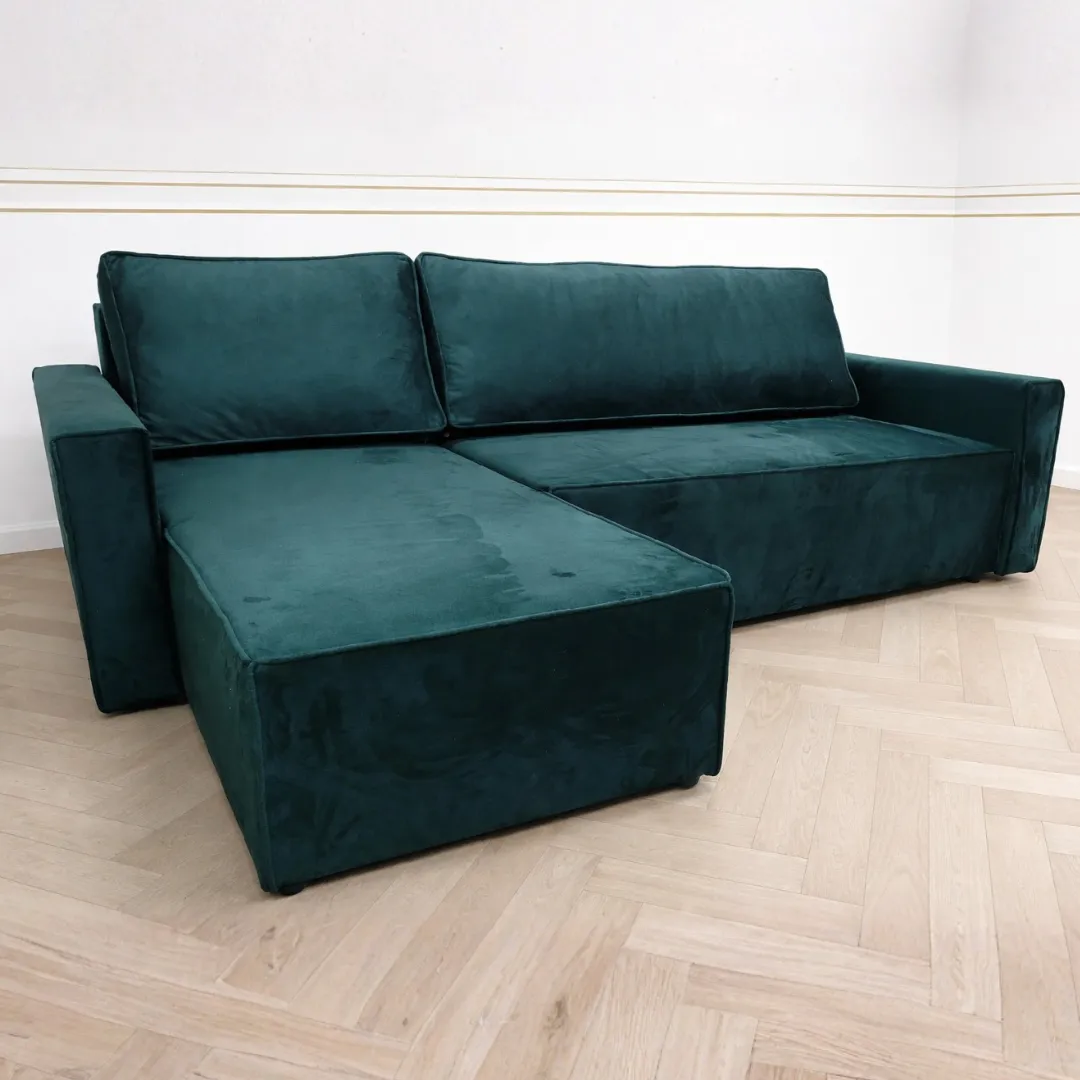 Narożnik z funkcją spania, z pojemnikiem na pościel i z automatem DL