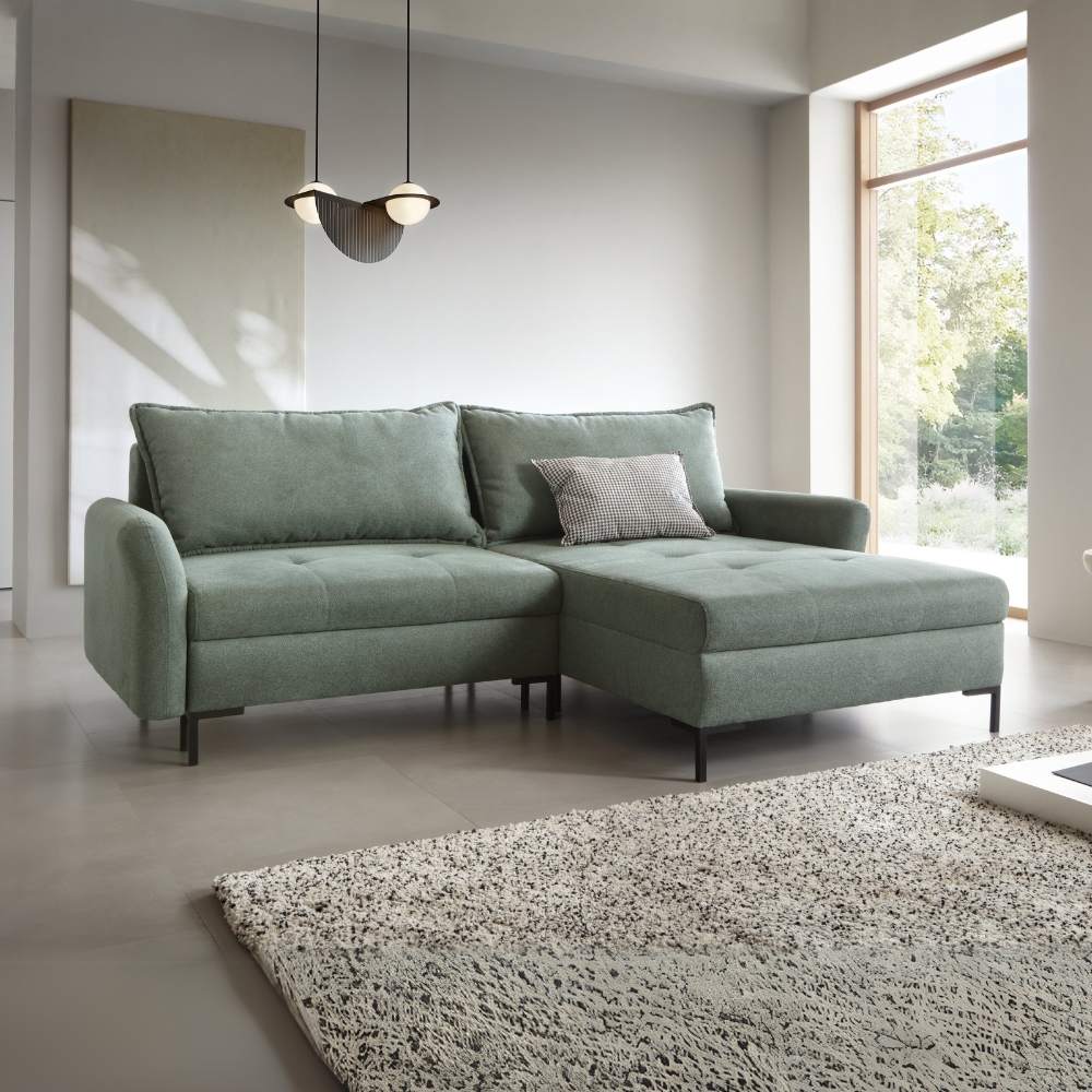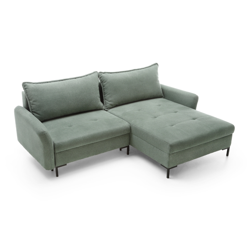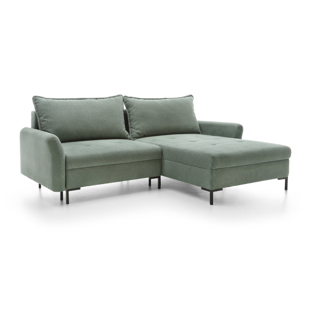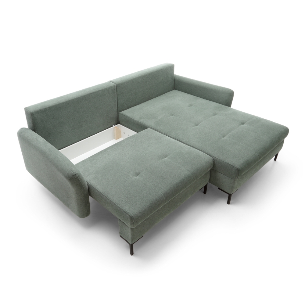 Mechanizm rozkładania typu DL umożliwia błyskawiczne i proste przekształcenie narożnika w wygodne łóżko o powierzchni spania 202 x 130 cm. Dodatkowym atutem jest wbudowany pojemnik na pościel, który umożliwia przechowywanie tekstyliów, kołder czy koców, pomagając zachować porządek w salonie.