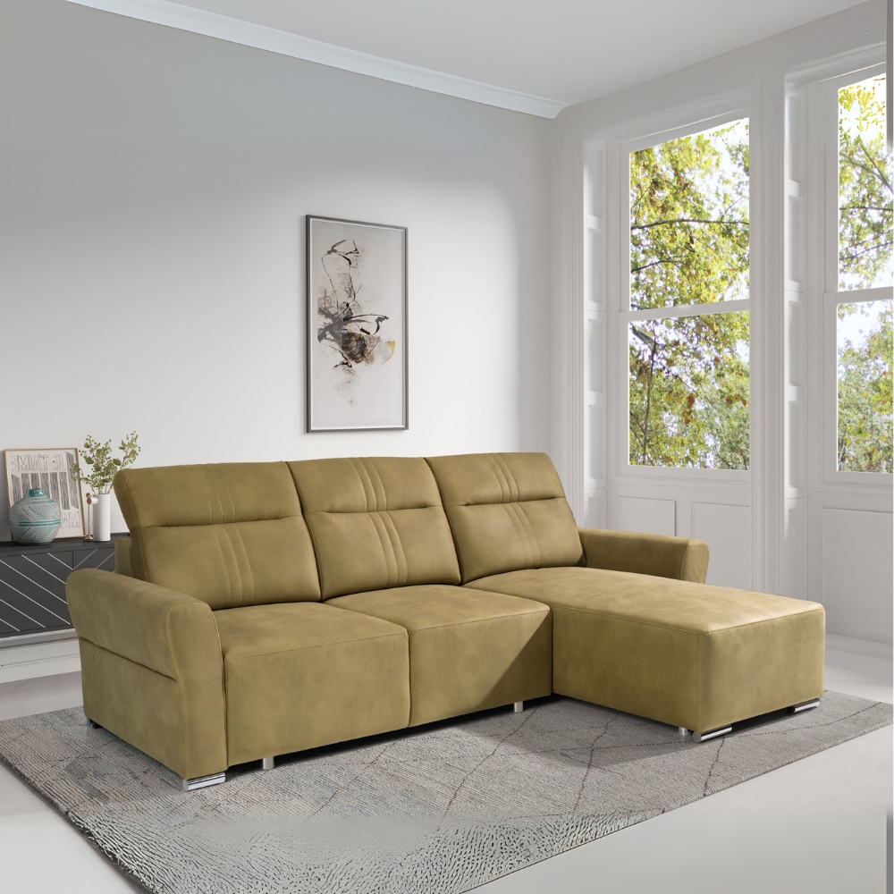 Narożnik TONTO w kształcie L to nie tylko stylowy element wyposażenia salonu, ale także praktyczne rozwiązanie na co dzień. Ponadto, dzięki mechanizmowi rozkładania Puma, w mgnieniu oka przekształcisz narożnik w przestronne łóżko. Dodatkowy pojemnik na pościel stanowi doskonałe miejsce na przechowywanie koców, poduszek oraz innych tekstyliów, co skutecznie pomaga w utrzymaniu porządku w Twoim salonie.