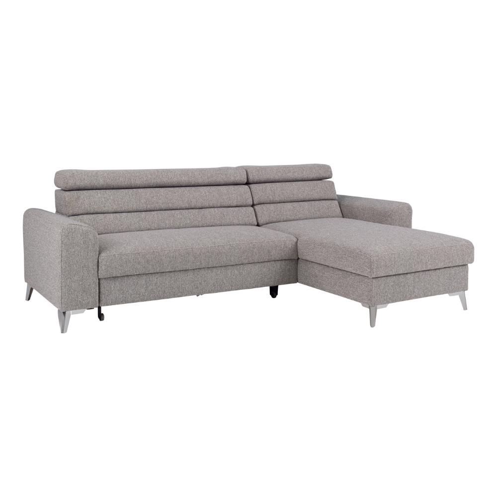 Szukasz narożnika, który harmonijnie łączy styl, wygodę oraz funkcjonalność? Rozkładany narożnik ZUMO, wykonany z pianki wysokoelastycznej, będzie idealnym wyborem dla osób ceniących sobie wysokie standardy. Jego nowoczesna bryła, eleganckie wykończenie oraz wysokie nóżki sprawiają, że doskonale wpisuje się zarówno w minimalistyczne, jak i klasyczne aranżacje wnętrz. Narożnik dostępny jest w wersji lewej oraz prawej, a także oferuje możliwość personalizacji koloru nóżek (chrom, chrom palony, czarny), co umożliwia pełne dopasowanie do Twojego stylu.