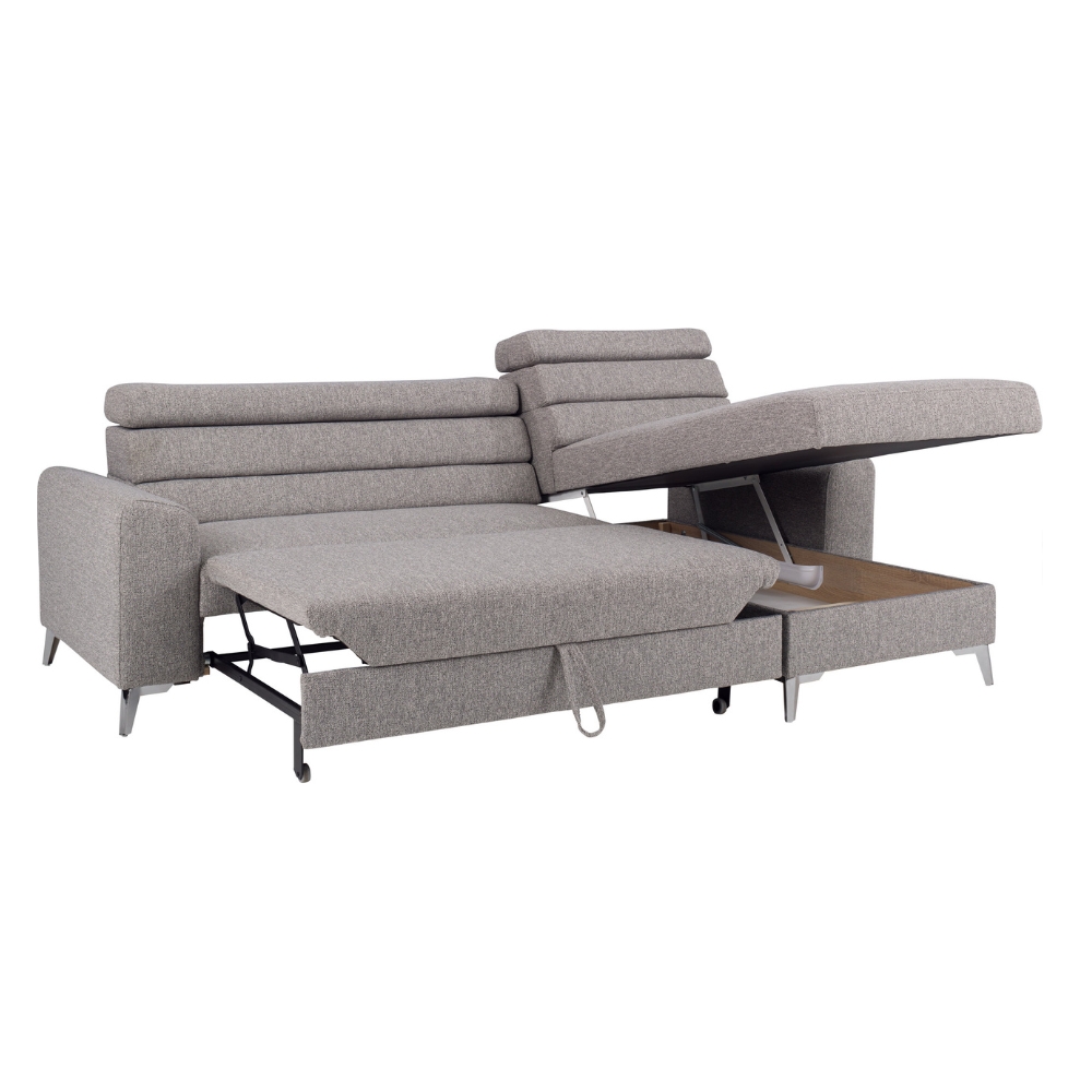 - dzięki funkcji spania, rozkładanie narożnika jest niezwykle proste i szybkie, co zawdzięcza innowacyjnemu systemowi Delfin