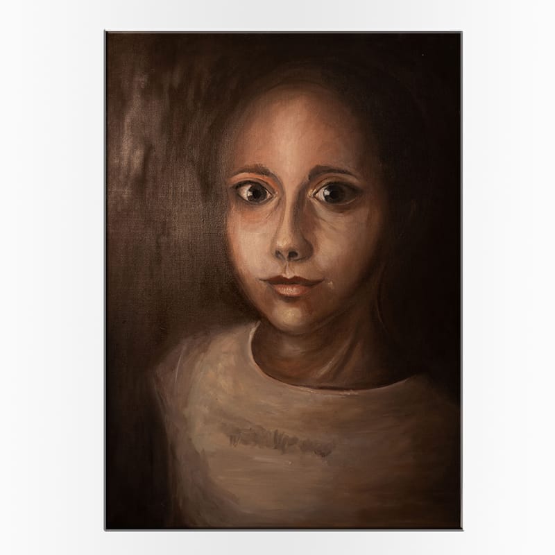 Nasz ręcznie malowany obraz przedstawia młodą dziewczynę o intensywnym, hipnotyzującym spojrzeniu, wprowadzając widza w świat ciszy i refleksji. W tej kompozycji światło łagodnie modeluje rysy twarzy, nadając portretowi ciepło i delikatność, jednocześnie tworząc atmosferę niepokoju i głębokiej zadumy. Autorka uchwyciła moment, w którym dziecięca niewinność spotyka się z tajemnicą, tworząc zaskakujące napięcie. Portret „Dziewczynka” to zaproszenie do introspekcji, do próby zrozumienia emocji i tajemnic, które mogą kryć się za młodym spojrzeniem. Wywołuje emocje tęsknoty, nostalgii, a jednocześnie nadziei na to, co nieznane.