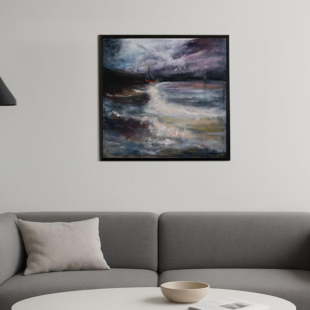 Artysta uchwycił moment spotkania żywiołów – burzliwego nieba i falującej tafli wody. W oddali widać żaglówki, które symbolizują wolność i nieustanną podróż. Co więcej, obraz inspiruje i dodaje wnętrzu charakteru oraz idealnie komponuje się zarówno z nowoczesnym, jak i klasycznym stylem aranżacji.