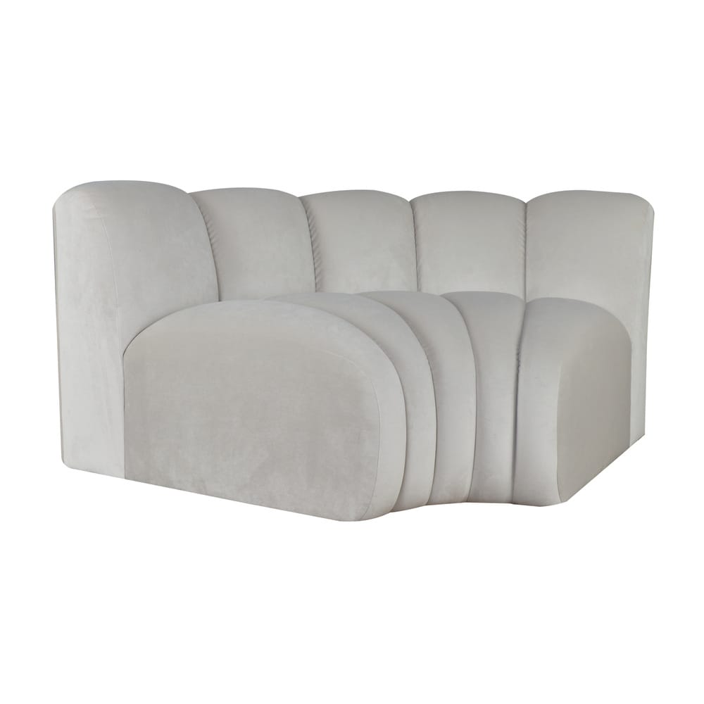 Róg do sofy modułowej to znakomite połączenie praktyczności oraz estetyki, które umożliwia stworzenie idealnego kącika do odpoczynku. Dzięki temu innowacyjnemu rozwiązaniu masz możliwość elastycznej aranżacji mebla, formując wygodny narożnik z idealnym dopasowaniem do stylu Twojego wnętrza. Solidna konstrukcja zapewnia stabilność, a miękkie wypełnienie gwarantuje wyjątkowy komfort codziennego użytkowania. Jego zaokrąglona forma i harmonijne przeszycia nadają mu subtelnej elegancji, a aksamitna tapicerka podkreśla ekskluzywny wygląd.